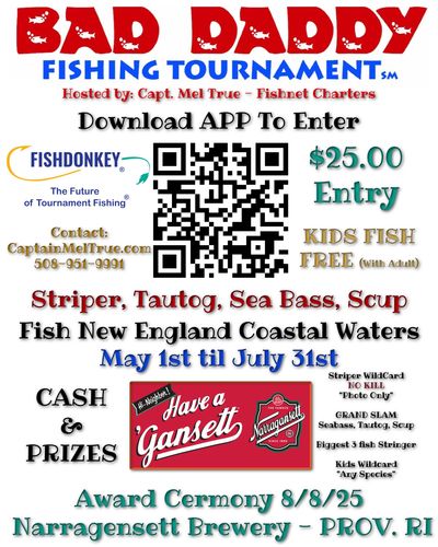 Participants must fish in the area specified for the event. Fishing has to be legal and in public Coastal New England Waters.