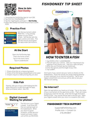 All registration and payment must be completed using the app. The FishDonkey App will be used to photo document fish and will generate live leaderboards. The leaderboards will update throughout the event as fish are submitted. All entries will be considered unofficial until verified.